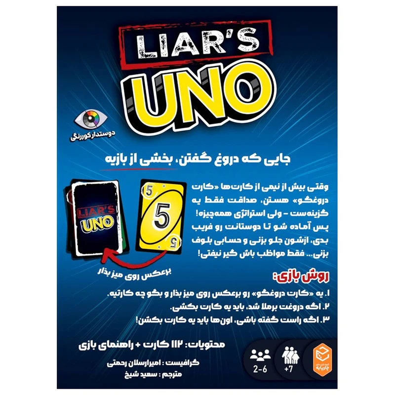 اونو دروغگو (UNO Liar’s) یه نسخه متفاوت، بامزه و هیجانی از بازی محبوب اونوئه که توش «دروغ گفتن» نهتنها مجازه، بلکه بخشی از بازیه! 😈
