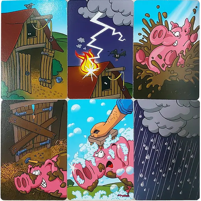 شما مالک چند تا خوک کوچولو و دوستداشتنی هستید که از تمیزی ناراحتن! هدف شما اینه که زودتر از بقیه بازیکنان، همهی خوکهاتون رو خوشحال کنید؛ یعنی کثیفشون کنید!اما مراقب باشید، چون بقیه با کارتهای مخصوص میتونن خوکهای کثیف و خوشحال شما رو دوباره تمیز و ناراحت کنن!
