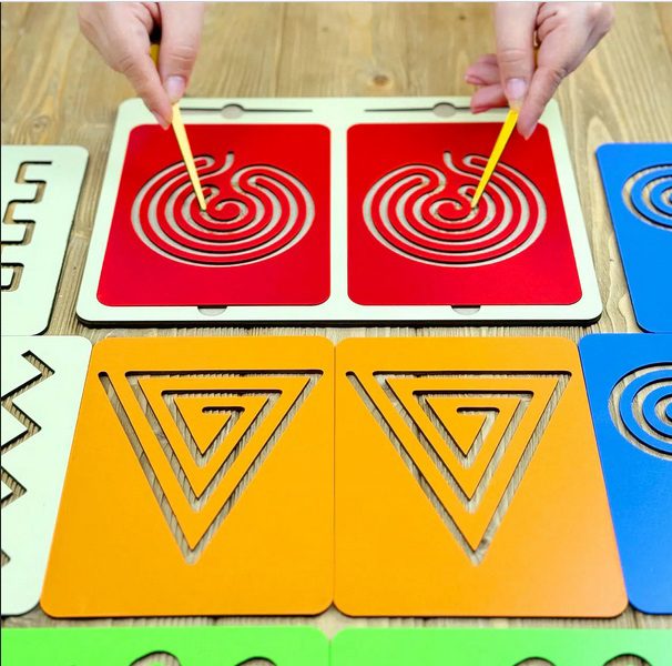 این بازی شامل ۵ جفت صفحه با مسیرهای پیچ در پیچ است و با ۲۸ روش مختلف میتوان از چوبهای خودکار مانند عبور کرد. نکته جالب؟ کودک باید همزمان از هر دو دست برای حرکت دادن چوبها استفاده کند 💪.