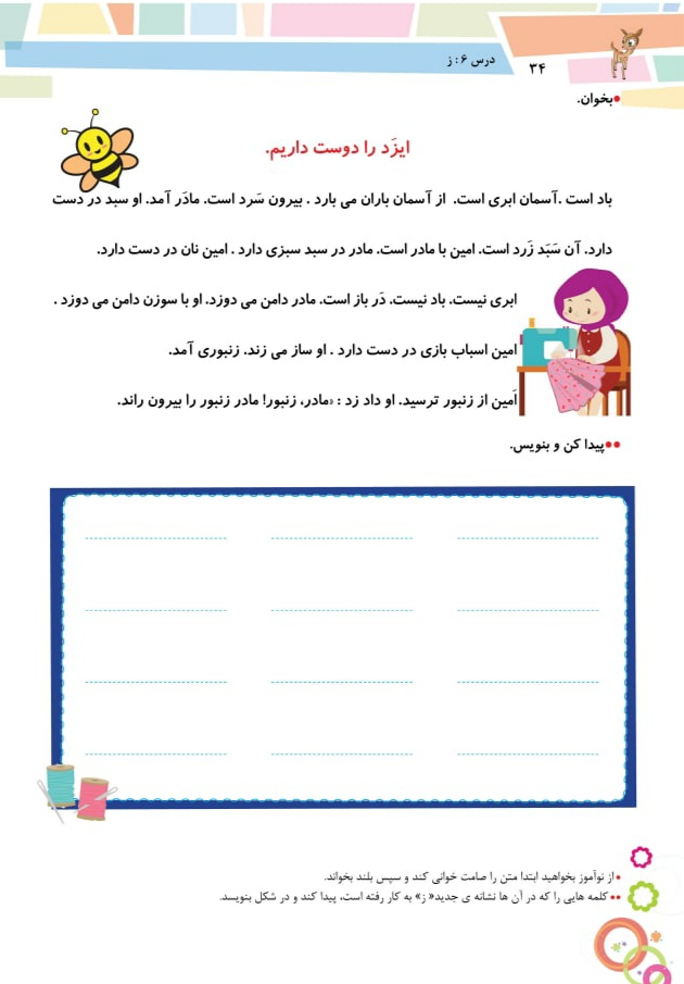 – جور میکند (تصویر را به کلمه وصل میکند).